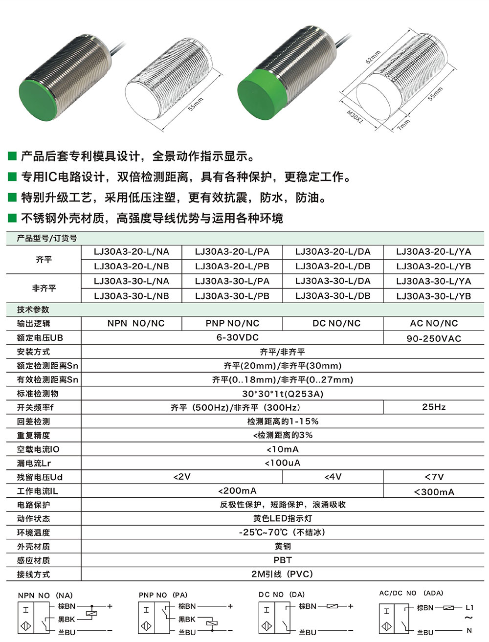 Position:Home > Product > proximity switch > LJ cylinder double distance series LJ30A3